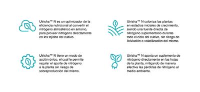 Utrisha™ N es un innovador producto biológico que captura nitrógeno atmosférico en el cultivo, de manera natural, durante todo su ciclo de crecimiento.